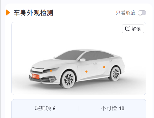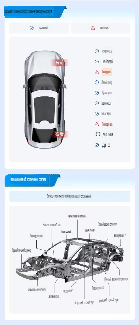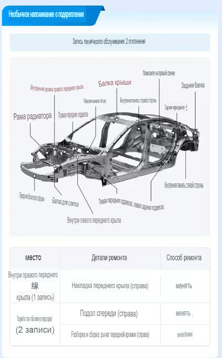 Информация о нюансах на кузове авто. Оранжевым маркером отмечены недостатки на кузове (мелкие сколы, поверхностные царапины и т.п.).