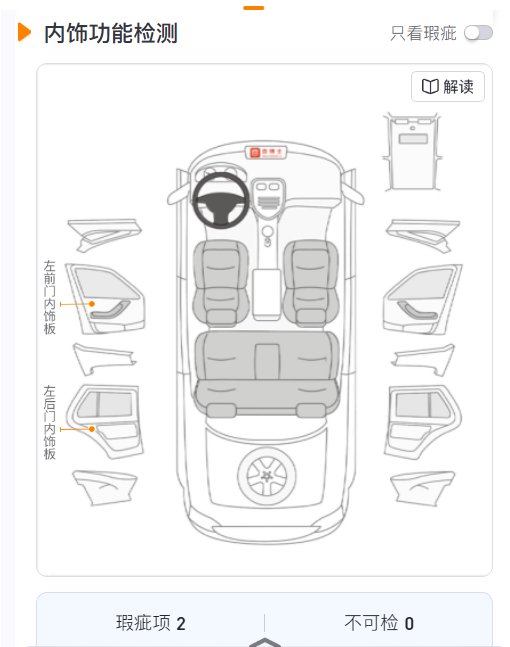 Информация о нюансах в интерьере авто. Оранжевым маркером отмечены замечания в интерьере.