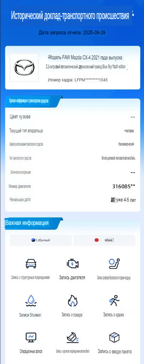 VIN, дата составления, общая информация об авто, итоговая оценка состояния авто и т.д.