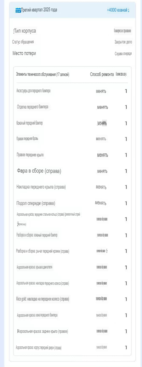 - Отчёт о страховых случаях.